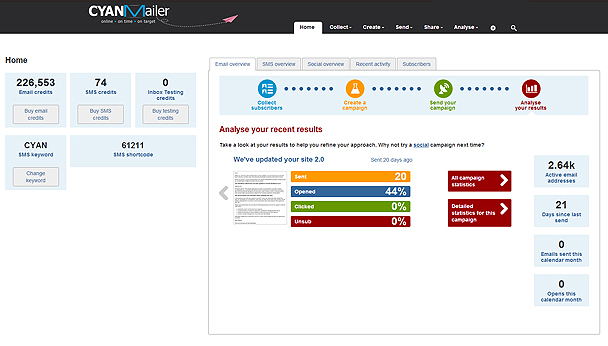 CyanMailer, our email marketing platform is for people who require the tools to configure powerful marketing campaigns, quickly and easily, without the need to understand code. Whether you’re broadcasting to 200 or 2 million contacts, we offer the functionality and support to make for a successful campaign.