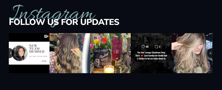 Boost engagement: Let your website visitors feel the real-time pulse of your brand through user-generated content, comments, and reactions. This sense of immediacy will encourage them to interact, share, and become part of the conversation, and a website we designed recently for our client, The Hair Lounge, demonstrates this effect nicely. By hovering over their feed, you can see just how many people liked and commented on their posts: